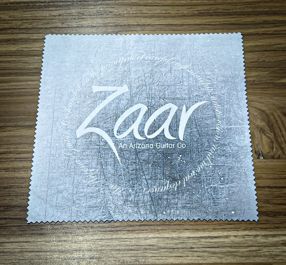 Zaar Guitars 7"x7" soft cloth wipe for all your guitar cleaning needs.