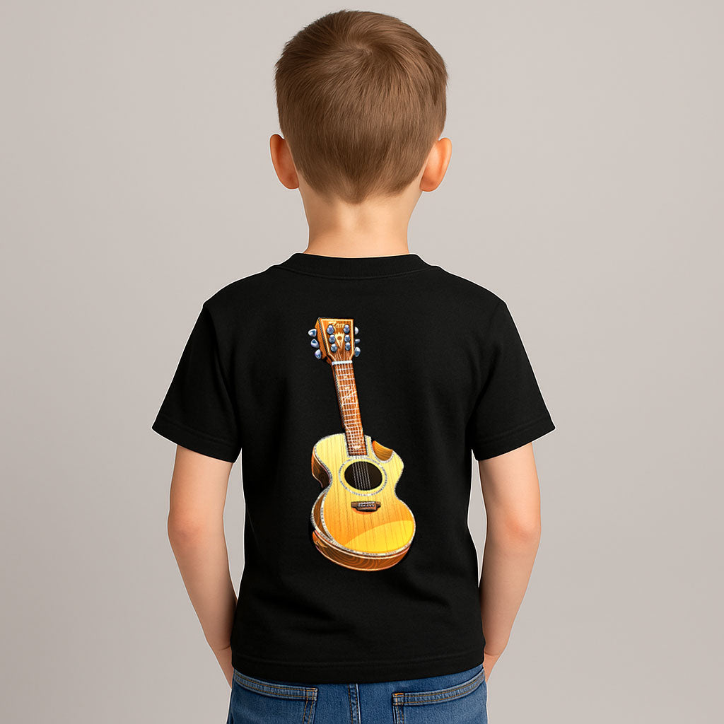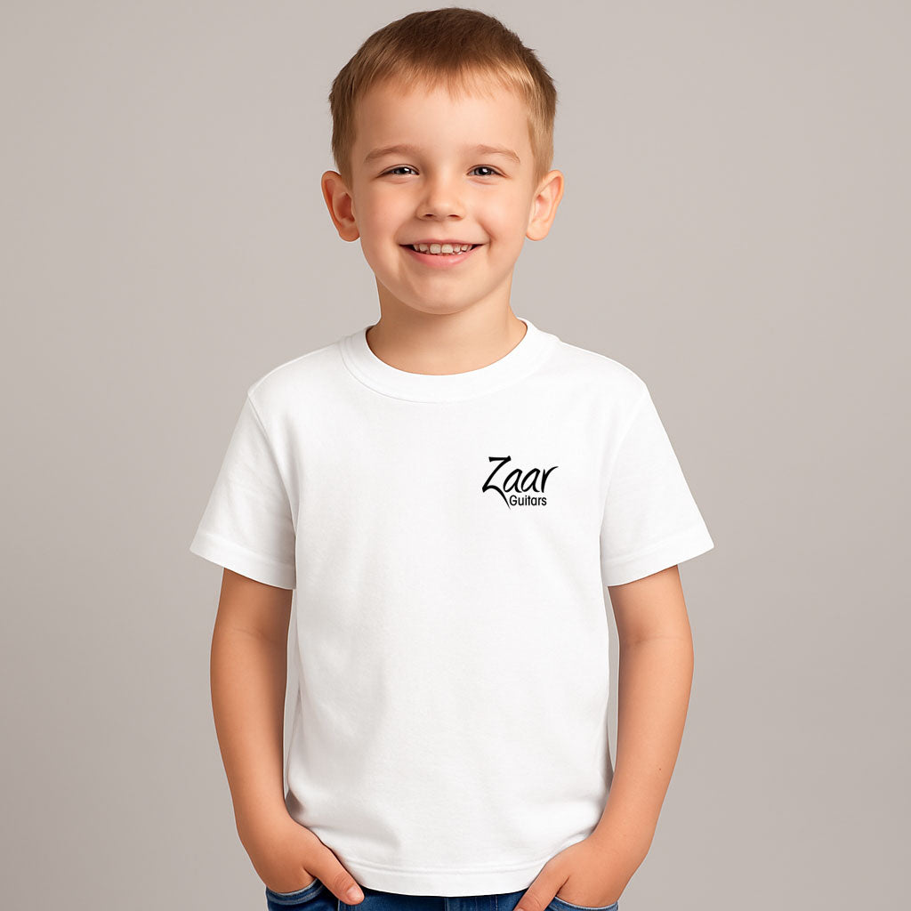 Cartoon Zaar Guitar graphic t-shirt with Zaar logo on front.